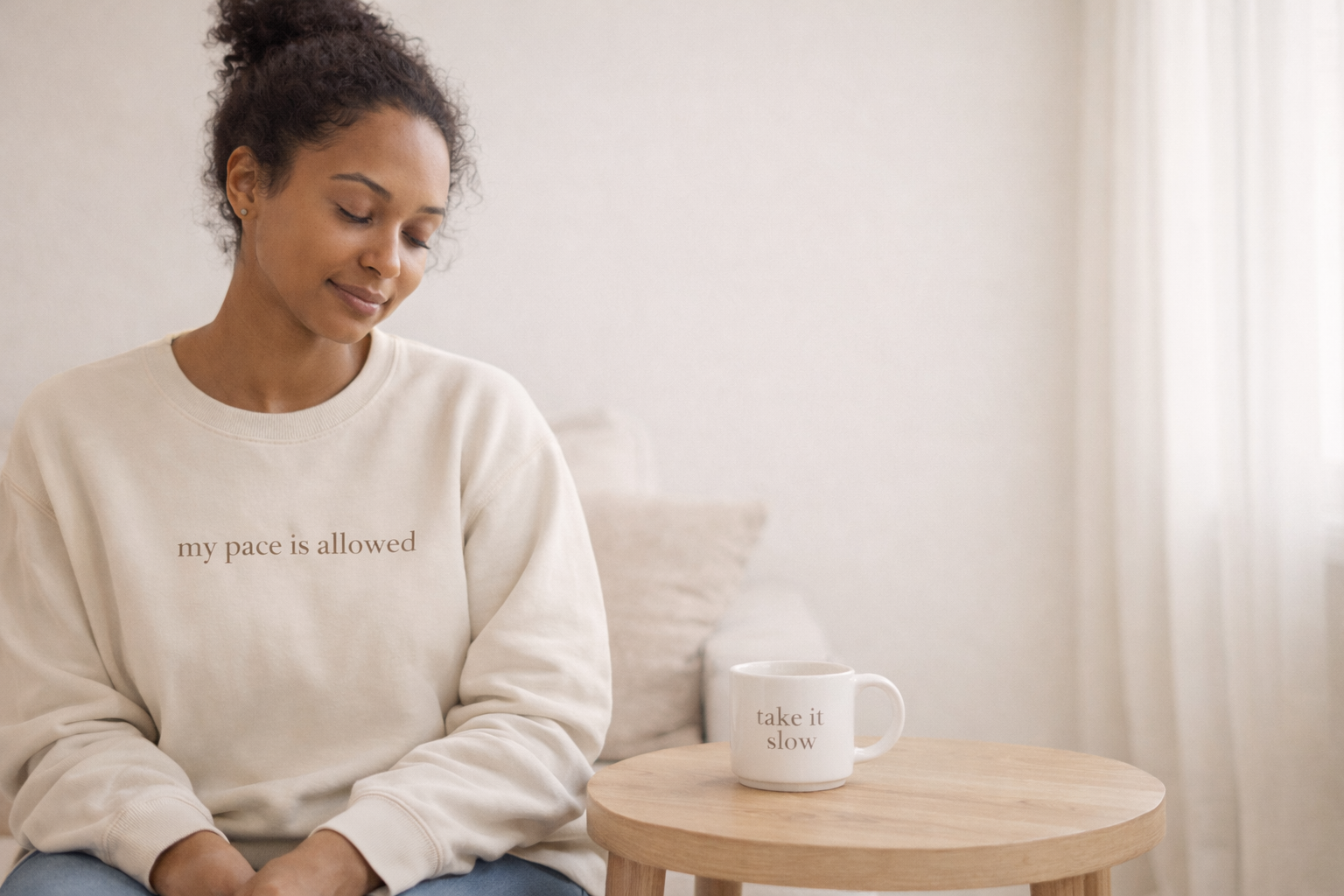My Pace Is Allowed – Cozy Minimal Sweatshirt for Intentional Living